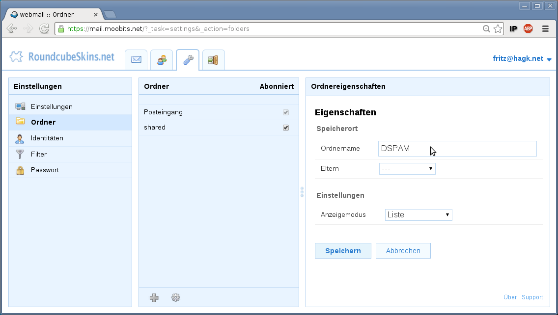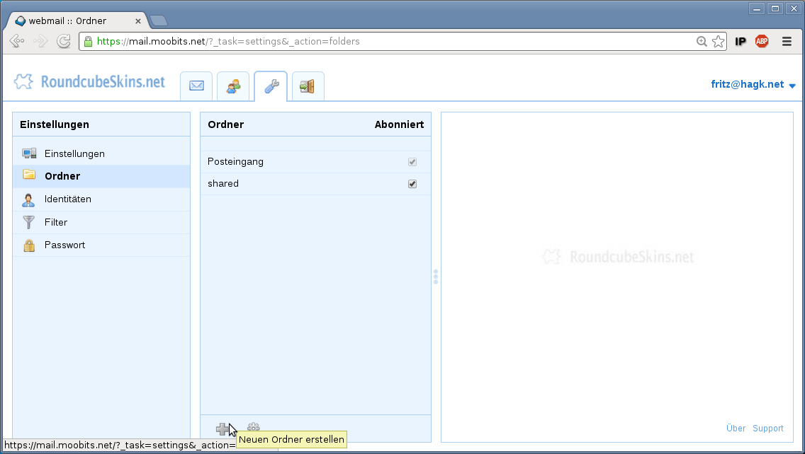 Ordner im webmailer 'roundcube' anlegen